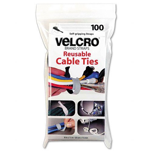 !±8±Velcro® Reusable Self-Gripping Cable Ties, 1/2" x 8" Long, Black, 100 Ties per Pack